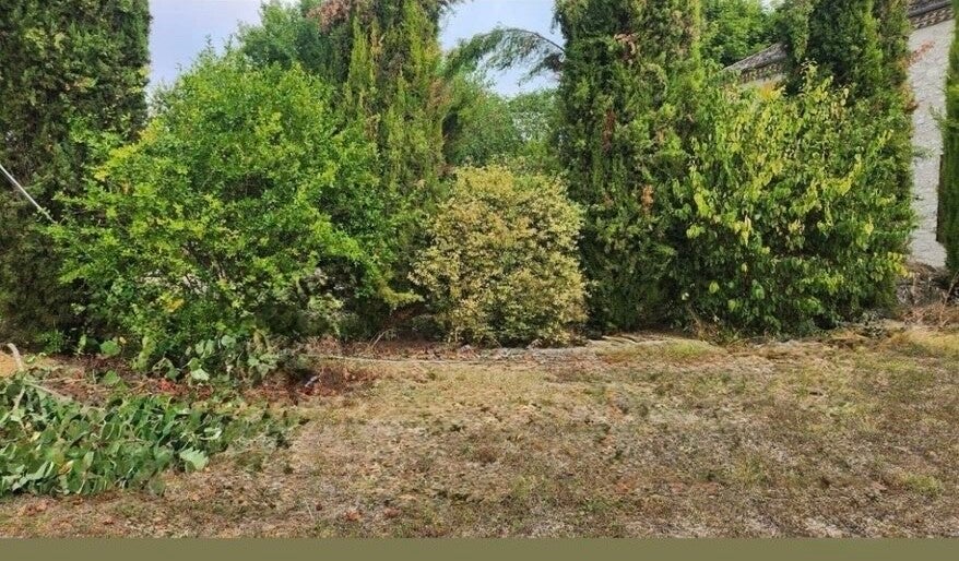 Un jardin laissé à l'abandon, envahi par les mauvaises herbes.